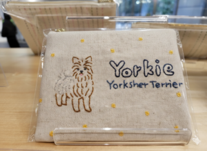 ヨークシャテリアノの刺繍がとっても素敵な、手作りミニポーチ。